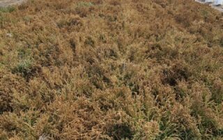Mensualmente analizamos el agua de riego salobre, utilizada mediante iorrigación por surcos durante las temporadas de primavera y verano. Además, realizamos un monitoreo trimestral de los suelos para evaluar su equilibrio y sostenibilidad. En el caso específico de la salicornia, enviamos brotes al laboratorio cada cuatro meses para verificar su calidad, contenido de sales y concentración de ácidos grasos.